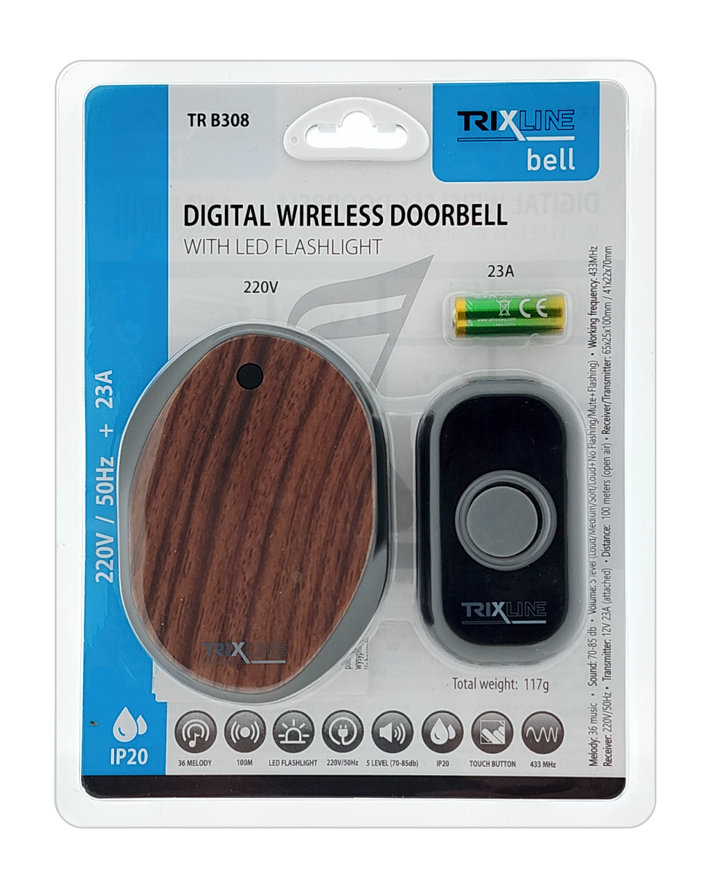 Bezdrôtový zvonček Trixline BELL je skvelé riešenie všade tam, kde nie je možné nainštalovať klasické drôtové pripojenie. Medzi hlavné prednosti patrí veľmi jednoduchá montáž, prevádzka tlačidla na batérie.