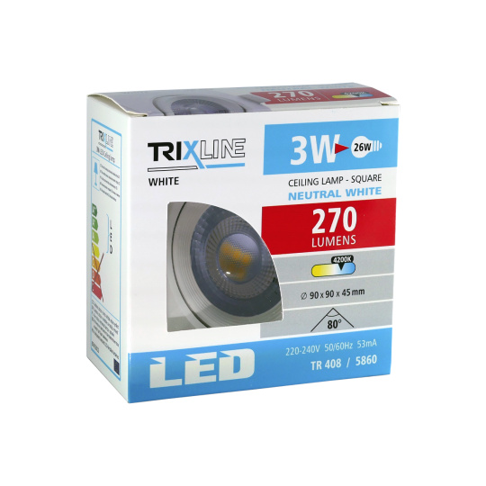 V modernom interiéri sa často používajú tzv. vstavané svetlá. Bodové LED svetlo TRIXLINE – 3W je ideálnou voľbou. Bodová svietidlá s neutrálnym bielym svetlom príjemným pre oči, môžete voliť do všetkých vnútorných priestorov a naklápať či smerovať podľa vlastnej voľby. LED svetlo je určené na zapustenie do sadrokartónu. Disponuje rýchlou a jednoduchou inštaláciou.