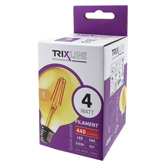 Bezpečnostné informácie (PDF)Dekoračná LED žiarovka FILAMENT Trixline 4W 440lm G95 E27 teplá biela