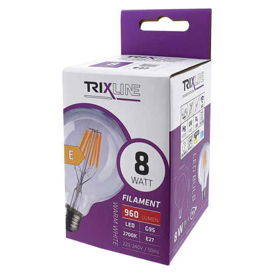 Bezpečnostné informácie (PDF)Dekoračná LED žiarovka FILAMENT Trixline 8W 960lm G95 E27 teplá biela