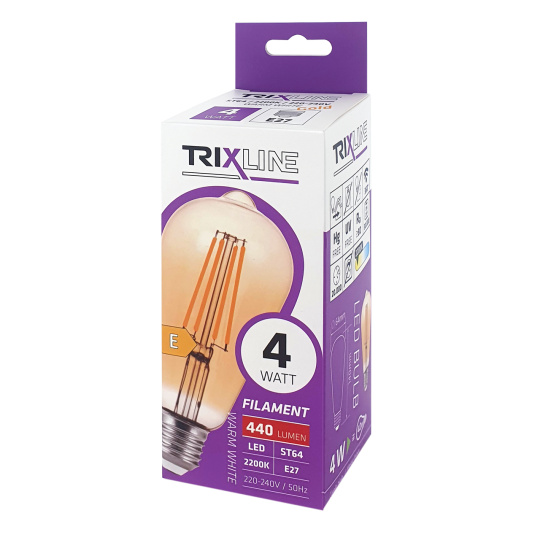 Bezpečnostné informácie (PDF)Dekoračná LED žiarovka - Gold FILAMENT 4W 440lm ST64 E27 teplá biela Trixline