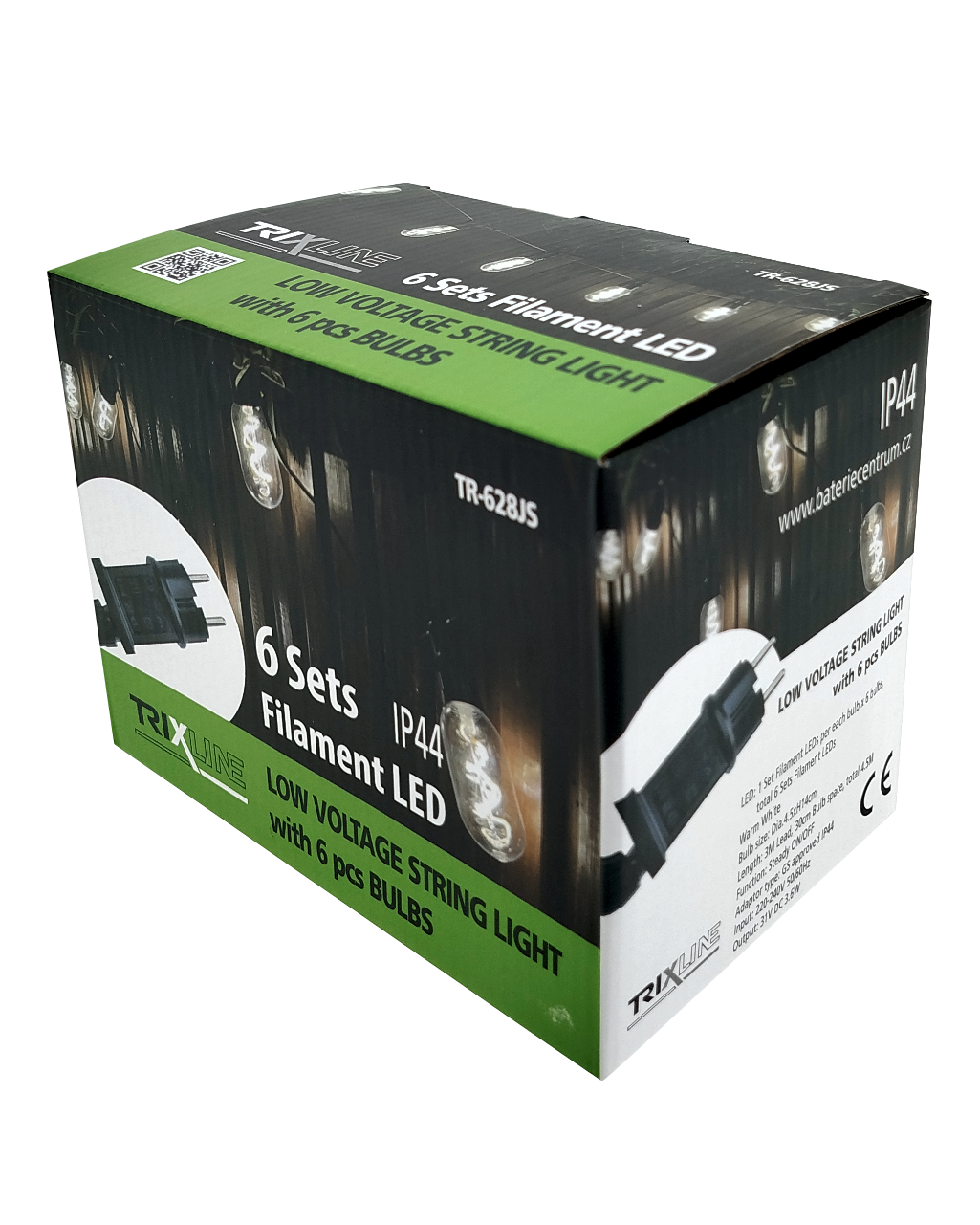 Vytvorte si príjemnú atmosféru na záhrade, terase alebo balkóne s dekoratívnym LED osvetlením TR-628JS. Tento svetelný reťaz obsahuje 6 štýlových žiaroviek v teplej bielej farbe (2700K) na celkovej dĺžke 4,5 metra.Robustné plastové prevedenie s krytím IP44 zaisťuje odolnosť voči poveternostným vplyvom, a je tak ideálne pre vonkajšie použitie. Svetelný reťaz je napájaný zo siete (220–240V) a má bezpečný výstup 31V DC / 3,6W. Vďaka 3 metrovému prívodnému káblu je inštalácia jednoduchá a flexibilná.