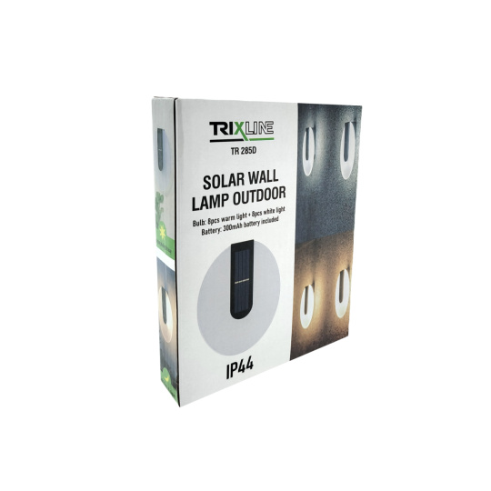 Štýlové a úsporné riešenie pre osvetlenie vašej záhrady, terasy alebo balkóna. LED solárne nástenné svetlo TR-285D vďaka priloženému upevňovaciemu materiálu ľahko umiestnite napríklad na stenu, môžete si zvoliť medzi 8 LED svetielkami teplej farby (2700K) alebo 8 LED svetielkami studenej farby (6400K). Vďaka solárnemu napájaniu je ideálny pre vonkajšie použitie bez nutnosti pripojenia k elektrickej sieti.