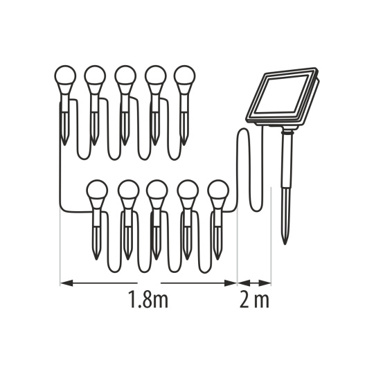 Štýlové a úsporné riešenie pre osvetlenie vašej záhrady, terasy alebo balkóna. LED solárne svetlo TR-333D sa skladá z desiatich jednotlivých RGB LED diódových zápichov rozmiestnených na kábli o dĺžke 3,8 metra. Vďaka solárnemu napájaniu a možnosti voľby režimov svietenia je ideálny pre vonkajšie použitie bez nutnosti pripojenia k elektrickej sieti.
