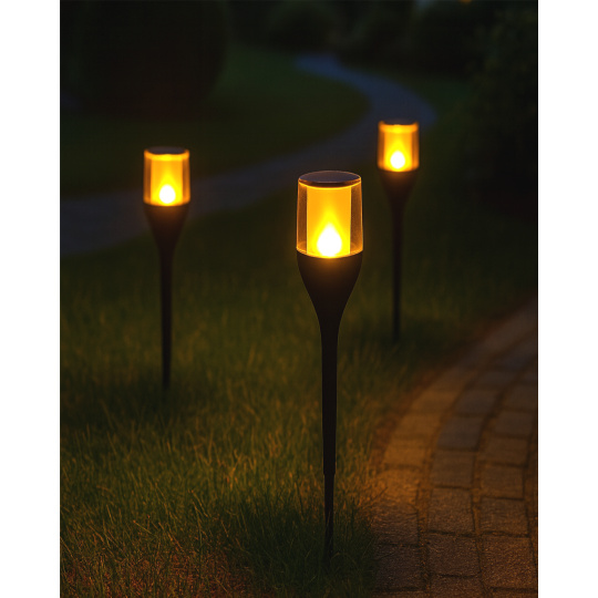 Štýlové a úsporné riešenie pre osvetlenie vašej záhrady, terasy alebo balkóna. LED solárne svetlo TR-664J ľahko vďaka zápichu nainštalujete napr. do trávy alebo kvetináča, 12 LED svetielok v pochodni imituje pohyb plameňa. Vďaka solárnemu napájaniu je ideálny pre vonkajšie použitie bez nutnosti pripojenia k elektrickej sieti.