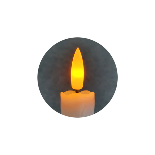 Farba: bielo-zlatá, teplý blikajúci plameň