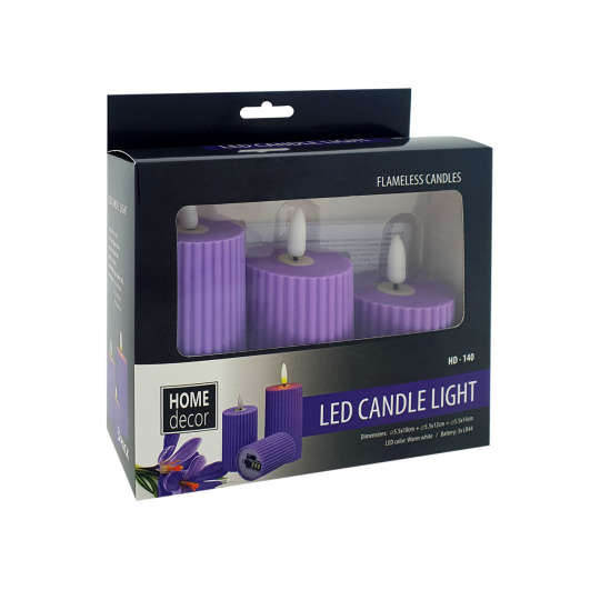HD-140 LED svieca - fialová 5,5x10cm HOME DECOR sada 3ks