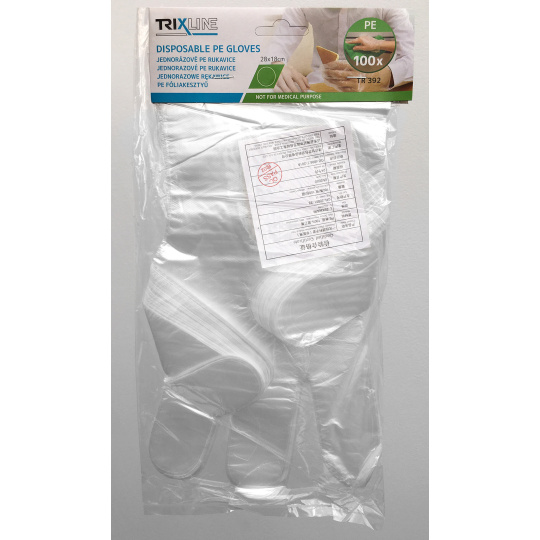 Bezpečnostné informácie (PDF)Jednorazové PE rukavice Trixline TR 392 veľ. L