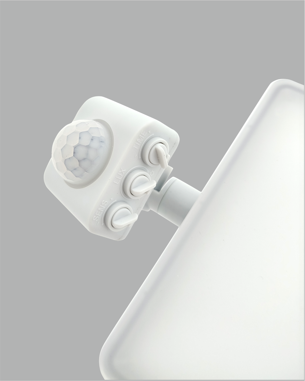 Pohybový senzor možno nasmerovať požadovaným smerom a prispôsobiť podľa potreby. Nastaviť môžete detekčný dosah (1–7m), úroveň osvetlenia (10–2000lux) aj dobu svietenia (10 sekúnd až 7 minút).