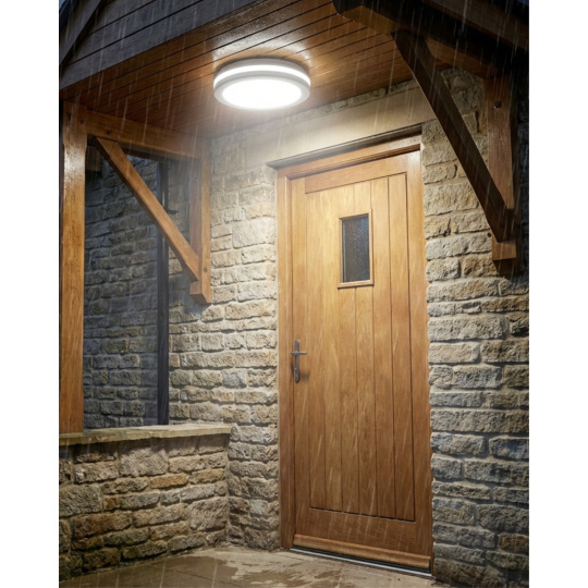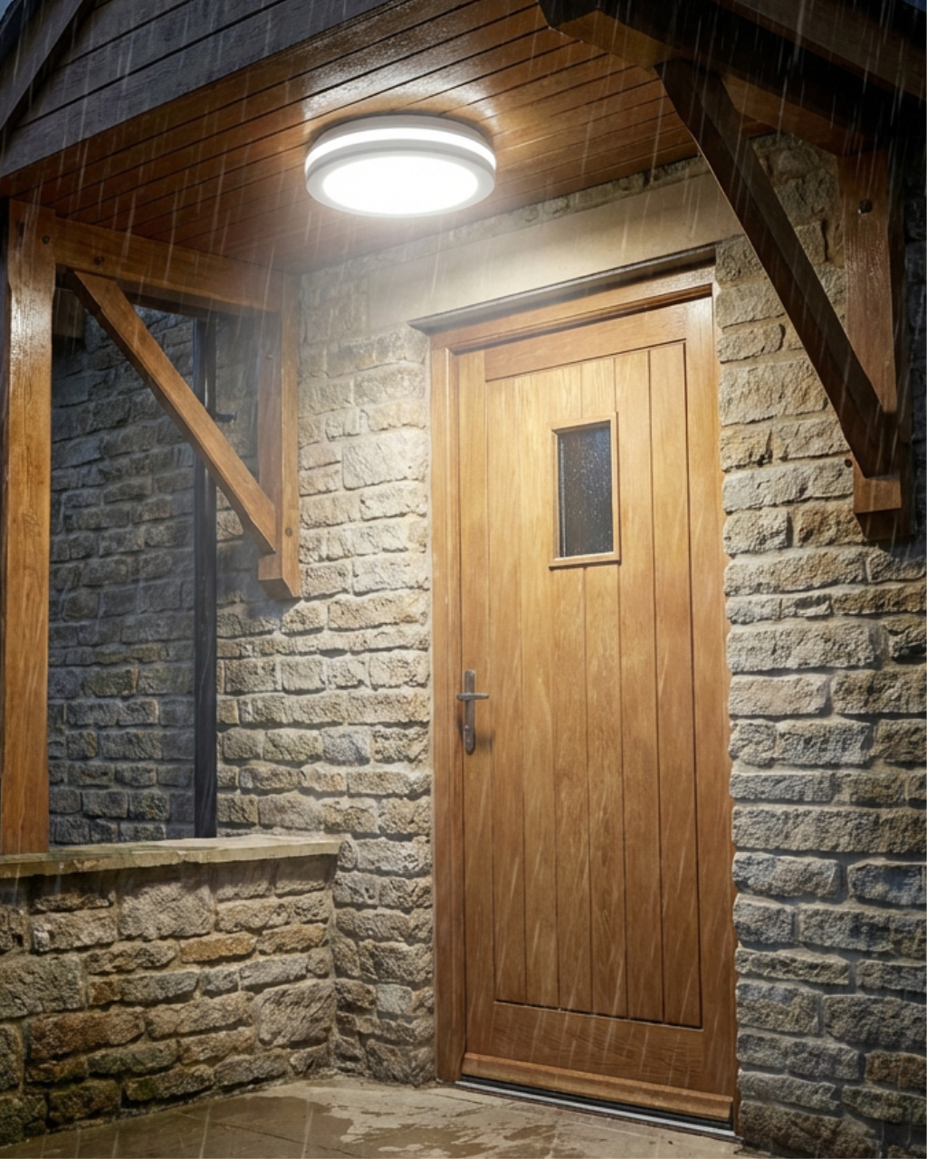 - Kryté vonkajšie priestory (napr. terasy, vstupné prístrešky) – ochrana IP54 umožňuje použitie aj vonku, ak je miesto čiastočne kryté
