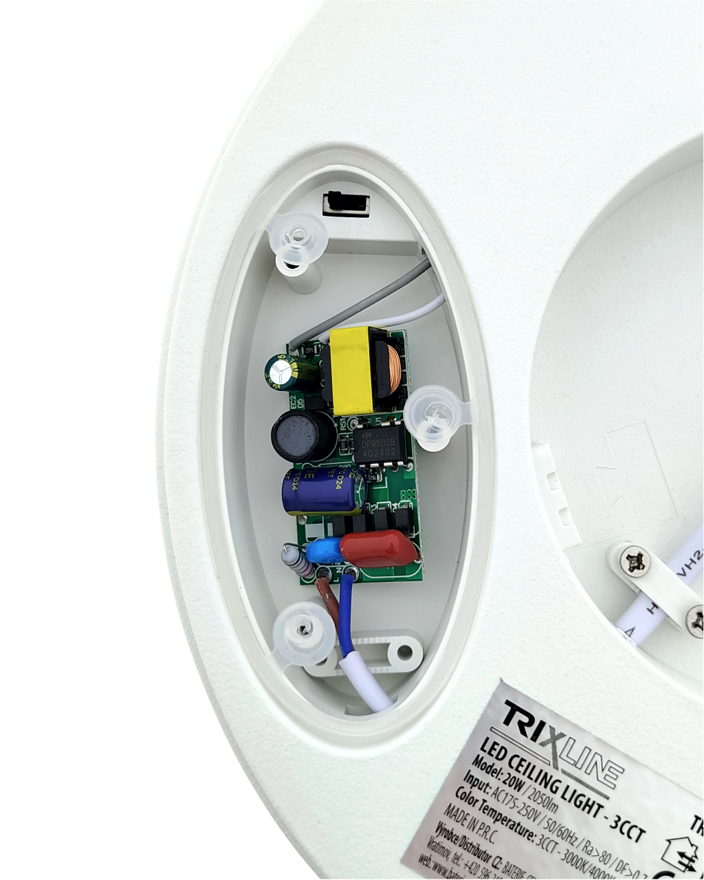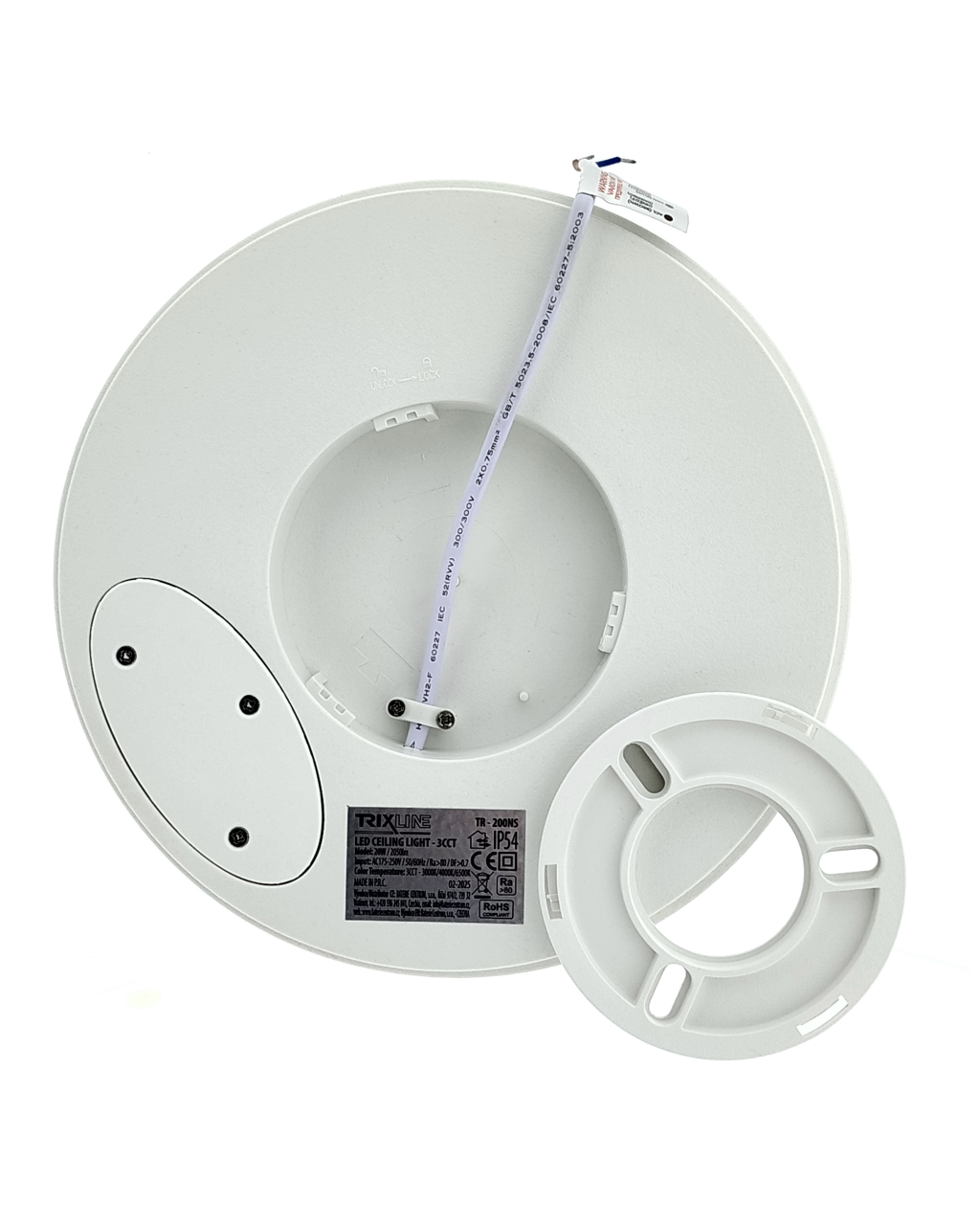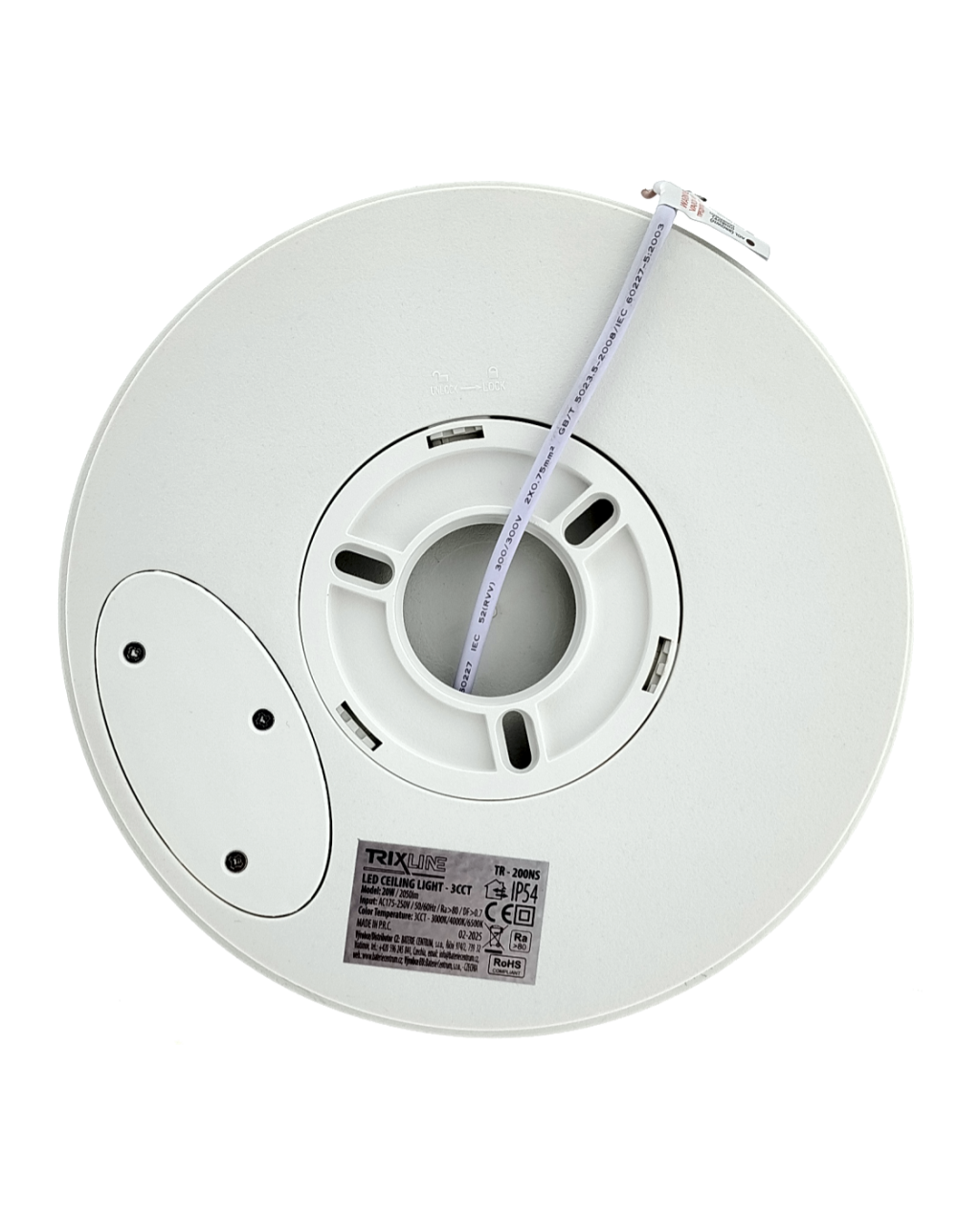 Moderné a výkonné LED CCT stropné svietidlo TR-200NS Trixline - poskytuje kvalitné a rovnomerné osvetlenie o sile 2050 lúmenov.Nastaviteľné CCT umožňuje voľbu teplej, neutrálnej alebo studenej bielej farby svetla (3000K/4000K/6500K) pre optimálne prispôsobenie atmosféry priestoru. Teplota svetla sa nastavuje pod krytom na zadnej strane pomocou posuvníka. Príjemné a efektívne osvetlenie, ktoré splní vaše estetické aj praktické požiadavky. Svietidlo je možné inštalovať na rôznych miestach vďaka jeho univerzálnym vlastnostiam a krytiu IP54, ktoré zabezpečuje ochranu proti prachu a striekajúcej vode.