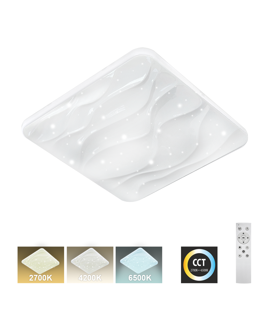 LED stropné svietidlo TR-609S - NERIS Trixline v bielej farbe s trblietavým efektom je určené do vnútorných priestorov ako sú obývacie izby, spálne, haly, kancelárie, chodby a podobné miesta. Pomocou priloženého ovládača môžete prepínať medzi tromi svetelnými teplotami v rozmedzí 2700K až 6500K , ktoré je možné stmievať podľa potreby pre navodenie príjemnej atmosféry. Pri maximálnom stlmení klesá spotreba až na iba 6W z pôvodných 36W, čo zaručuje úsporu energie.Ďalšou možnosťou na diaľkovom ovládači je aj nočný režim a funkcia 30 sekúnd po uplynutí ktorých sa LED svietidlo samo vypne. Svietidlo si po vypnutí pamätá posledný nastavený režim , čo zaisťuje pohodlné a intuitívne používanie.