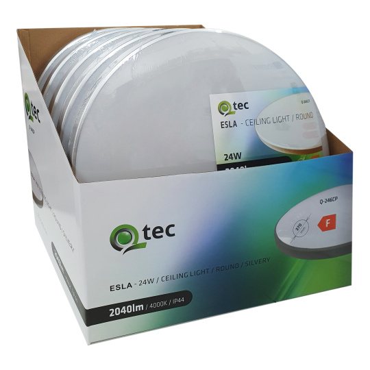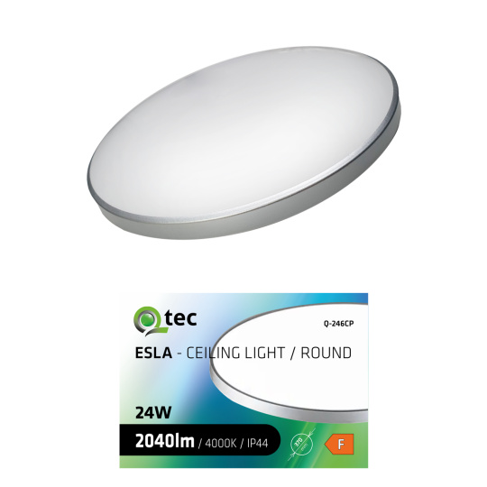 Bezpečnostné informácie (PDF)LED stropné svietidlo ESLA Q-246CP 24W 2040lm 4000K ø37cm/kruhové strieborné QTEC