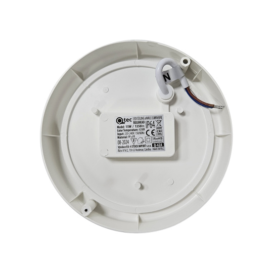 LED stropné svietidlo Q-42A Qtec s výkonom 15W zabezpečuje nízku spotrebu energie pri zachovaní vysokej svietivosti, pričom jeho svetelný tok 1350lm zabezpečuje efektívne a rovnomerné osvetlenie. Neutrálná biela farba svetla 4200K je vhodná pre komerčné priestory aj domáce použitie. Index podania farieb (CRI) ≥80 zaručuje prirodzené a verné podanie farieb. Vďaka uhlu vyžarovania 180° je svetlo rovnomerne rozptýlené bez oslnenia. Dlhá životnosť 25 000 hodín prispieva k dlhodobému a spoľahlivému prevádzkovaniu. Svietidlo s krytím IP64 ponúka vysokú odolnosť voči prachu a striekajúcej vode, vďaka čomu je vhodné pre vonkajšie aj vnútorné použitie. Svietidlo je ideálne pre kúpeľne, toalety, chodby, garáže, vonkajšie prístrešky alebo technické miestnosti, kde je vyžadovaná zvýšená ochrana proti vlhkosti a prachu.