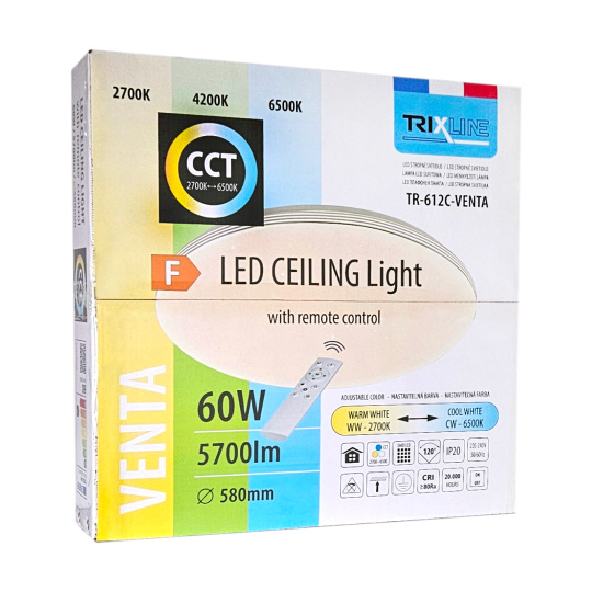 LED stropné svietidlo TR-612C - VENTA 60W 5700lm ø58cm CCT + ovládač Trixline