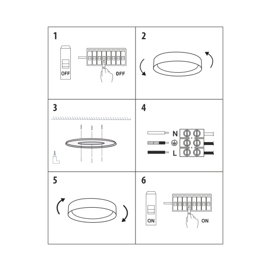 - Pred inštaláciou sa uistite, že máte vypnuté ističe a elektrická sieť nie je pod napätím.