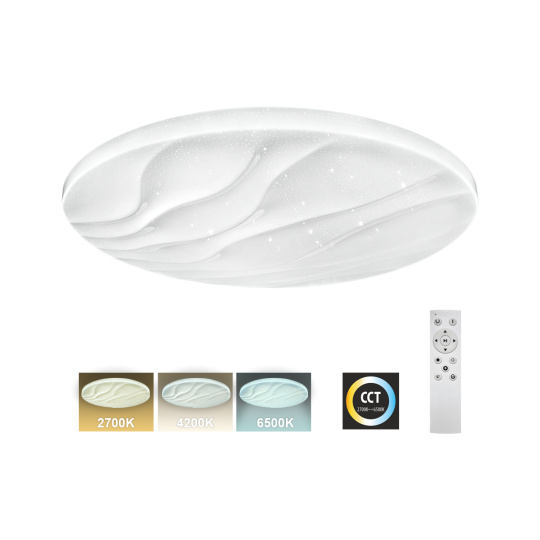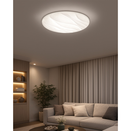 LED stropné svietidlo TR-608C - LIKA Trixline v bielej farbe s trblietavým efektom je určené do vnútorných priestorov ako sú obývacie izby, spálne, haly, kancelárie, chodby a podobné miesta. Pomocou priloženého ovládača môžete prepínať medzi tromi svetelnými teplotami v rozmedzí 2700K až 6500K , ktoré je možné stmievať podľa potreby pre navodenie príjemnej atmosféry. Pri maximálnom stlmení klesá spotreba až na iba 14W z pôvodných 80W, čo zaručuje úsporu energie.Ďalšou možnosťou na diaľkovom ovládači je aj nočný režim a funkcia 30 sekúnd po uplynutí ktorých sa LED svietidlo samo vypne. Svietidlo si po vypnutí pamätá posledný nastavený režim , čo zaisťuje pohodlné a intuitívne používanie.