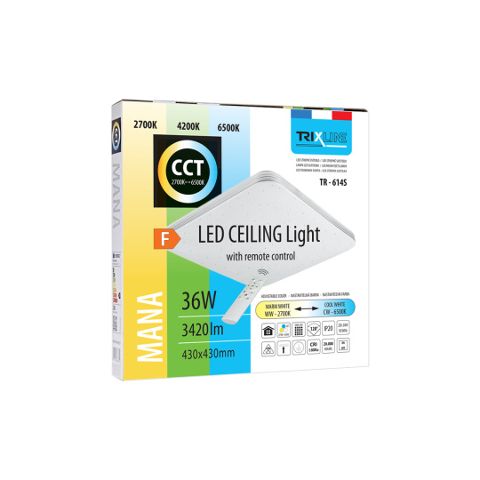 LED stropné svietidlo TR-614S - MANA 36W 3420lm 43x43cm CCT + ovládač Trixline