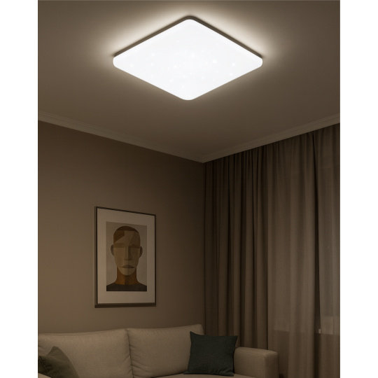 LED stropné svietidlo TR-604S - FLORA Trixline v bielej farbe s trblietavým efektom je určené do vnútorných priestorov ako sú obývacie izby, spálne, haly, kancelárie, chodby a podobné miesta. Pomocou priloženého ovládača môžete prepínať medzi tromi svetelnými teplotami v rozmedzí 2700K až 6500K , ktoré je možné stmievať podľa potreby pre navodenie príjemnej atmosféry. Pri maximálnom stlmení klesá spotreba až na iba 6W z pôvodných 36W, čo zaručuje úsporu energie.Ďalšou možnosťou na diaľkovom ovládači je aj nočný režim a funkcia 30 sekúnd po uplynutí ktorých sa LED svietidlo samo vypne. Svietidlo si po vypnutí pamätá posledný nastavený režim , čo zaisťuje pohodlné a intuitívne používanie.