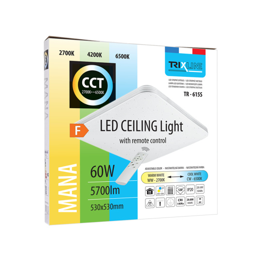 LED stropné svietidlo TR-615S - MANA 60W 5700lm 53x53cm CCT + ovládač Trixline