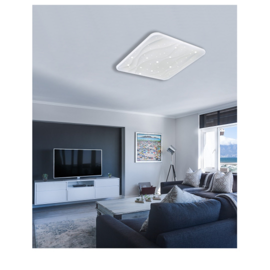 LED stropné svietidlo TR-610S - NERIS Trixline v bielej farbe s trblietavým efektom je určené do vnútorných priestorov ako sú obývacie izby, spálne, haly, kancelárie, chodby a podobné miesta. Pomocou priloženého ovládača môžete prepínať medzi tromi svetelnými teplotami v rozmedzí 2700K až 6500K , ktoré je možné stmievať podľa potreby pre navodenie príjemnej atmosféry. Pri maximálnom stlmení klesá spotreba až na iba 8W z pôvodných 60W, čo zaručuje úsporu energie.Ďalšou možnosťou na diaľkovom ovládači je aj nočný režim a funkcia 30 sekúnd po uplynutí ktorých sa LED svietidlo samo vypne. Svietidlo si po vypnutí pamätá posledný nastavený režim , čo zaisťuje pohodlné a intuitívne používanie.