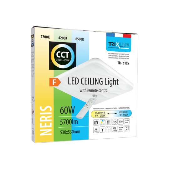 LED stropné svietidlo TR-610S - NERIS 60W 5700lm 53x53cm CCT + ovládač Trixline
