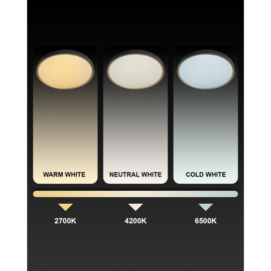 LED stropné svietidlo TR-617C - EBRO Trixline v čiernej farbe so zlatým lemom je určené do vnútorných priestorov ako sú obývacie izby, spálne, haly, kancelárie, chodby a podobné miesta. Pomocou priloženého ovládača môžete prepínať medzi tromi svetelnými teplotami v rozmedzí 2700K až 6500K , ktoré je možné stmievať podľa potreby pre navodenie príjemnej atmosféry. Pri maximálnom stlmení klesá spotreba až na iba 6W z pôvodných 36W, čo zaručuje úsporu energie.Ďalšou možnosťou na diaľkovom ovládači je aj nočný režim a funkcia 30 sekúnd po uplynutí ktorých sa LED svietidlo samo vypne. Svietidlo si po vypnutí pamätá posledný nastavený režim , čo zaisťuje pohodlné a intuitívne používanie.
