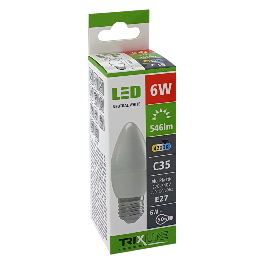 LED žiarovka Trixline 6W C35 E27 neutrálna biela