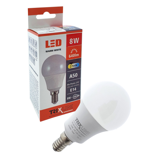 LED žiarovka Trixline 8W E14 A50 teplá biela