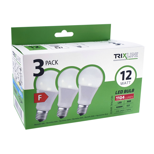 LED žiarovka Trixline 12W A60 E27 neutrálna biela 3 PACK