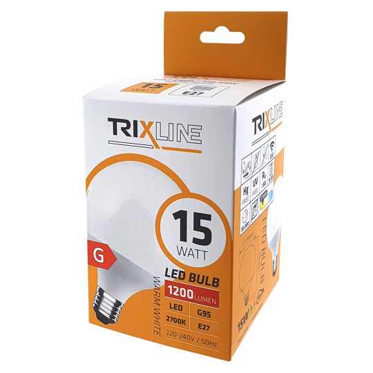 Bezpečnostné informácie (PDF)LED žiarovka Trixline 15W G95 E27 teplá biela