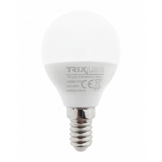 Bezpečnostné informácie (PDF)LED žiarovka Trixline 6W P45 E14 neutrálna biela 3 PACK