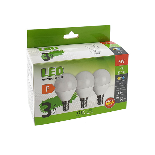 LED žiarovka Trixline 6W P45 E14 neutrálna biela 3 PACK