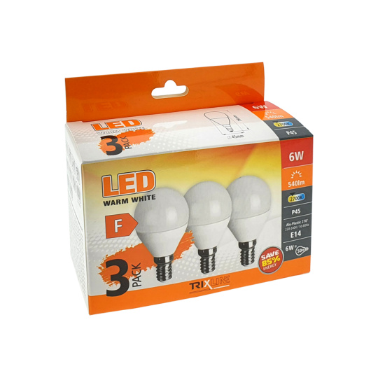 LED žiarovka Trixline 6W P45 E14 teplá biela 3 PACK