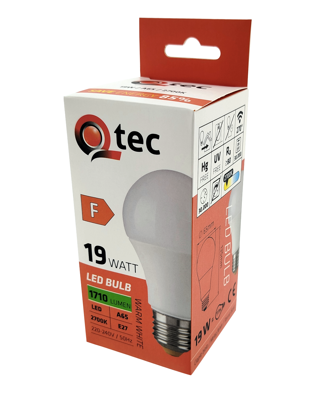 LED ŽIAROVKA Q-tec je úsporná LED žiarovka s päticou E27, šetrná k životnému prostrediu, neobsahuje totiž žiadnu ortuť ani olovo, navyše sa dobre osvedčuje aj pri extrémne nízkych aj vysokých teplotách, kedy s vláknovými žiarovkami bývajú problémy. Jej životnosť dosahuje až 30 000 hodín. LED žiarovka sa po zapnutí okamžite rozsvieti bez akejkoľvek oneskorenia a vyžaruje príjemné teplé biele svetlo 2700K.