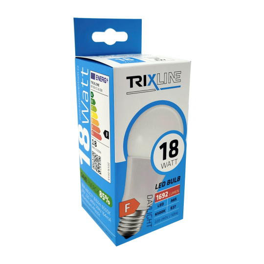 LED ŽIAROVKA TRIXLINE je úsporná LED žiarovka s päticou E27, šetrná k životnému prostrediu, neobsahuje totiž žiadnu ortuť ani olovo, navyše sa dobre osvedčuje aj pri extrémne nízkych aj vysokých teplotách, kedy s vláknovými žiarovkami bývajú problémy.Jej životnosť dosahuje až 30 000 hodín.Vďaka svojmu výkonu 18W výborne poslúži ako náhrada za klasickú 150W žiarovku. LED žiarovka sa po zapnutí okamžite rozsvieti bez akejkoľvek oneskorenia a vyžaruje príjemné teplé biele svetlo 6500K.