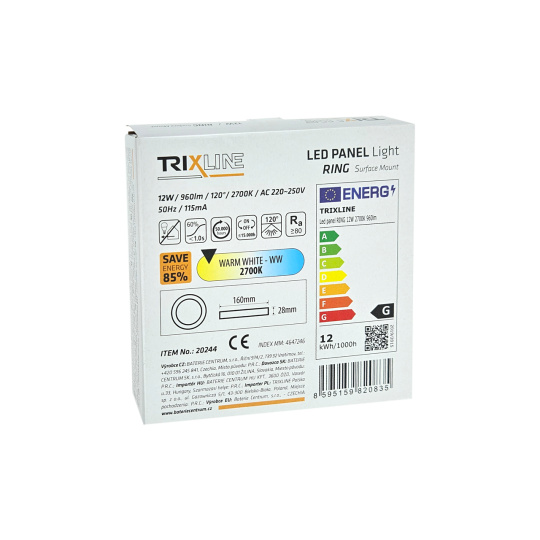 TR-158 LED panel 12W 960lm 2700K - kruhový prisadený Trixline
