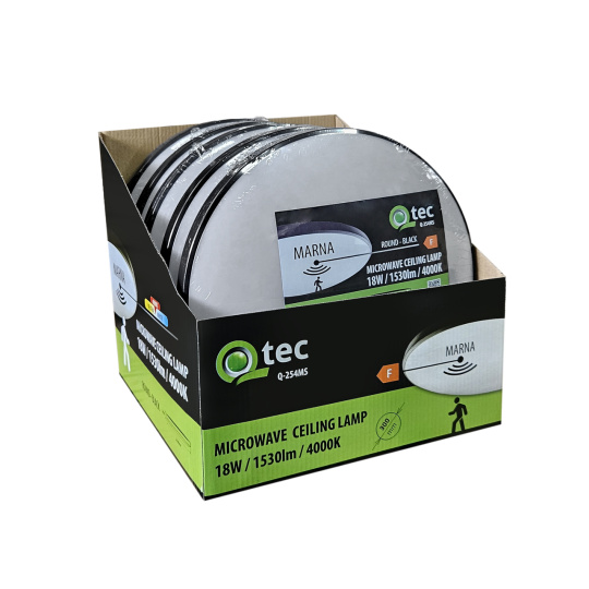 Bezpečnostné informácie (PDF)Q-254MS LED svietidlo so senzorom pohybu MARNA 18W 1530lm 4000K ø30cm/kruhové čierne QTEC