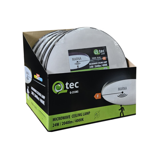 Bezpečnostné informácie (PDF)Q-255MS Led svietidlo so senzorom pohybu MARNA 24W 2040lm 4000K ø37cm/kruhové čierne QTEC