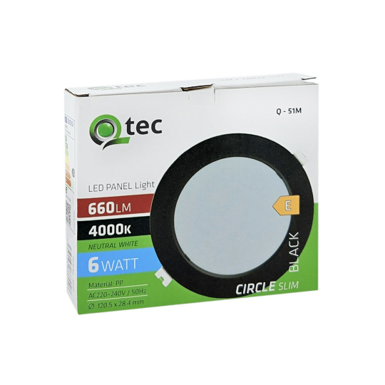safety-instructions-led-panels-4-stock-import-sro.pdfQ-51M LED panel 6W 660lm 4000K čierny - kruhový vstavaný Qtec