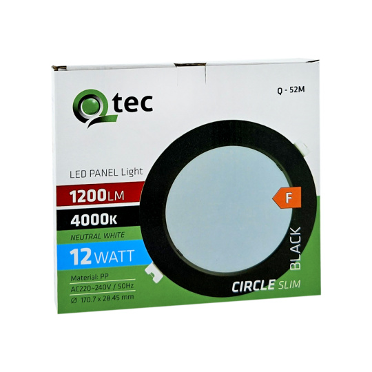 Bezpečnostné informácie (PDF)Q-52M LED panel 12W 1200lm 4000K čierny - kruhový vstavaný Qtec
