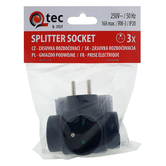 QTEC Q-372F čierna rozbočovacia zásuvka RW-3