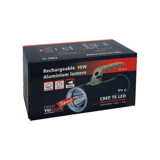 Ručné nabíjacie svietidlo Trixline A213 LED je príručné svetlo vysokého výkonu. Telo svietidla je z hliníka, čím zaisťuje nízku hmotnosť a vysokú odolnosť. Po vybití stačí nabiť priloženú nabíjačkou. Svietidlo je vybavené pevnou rukoväťou.