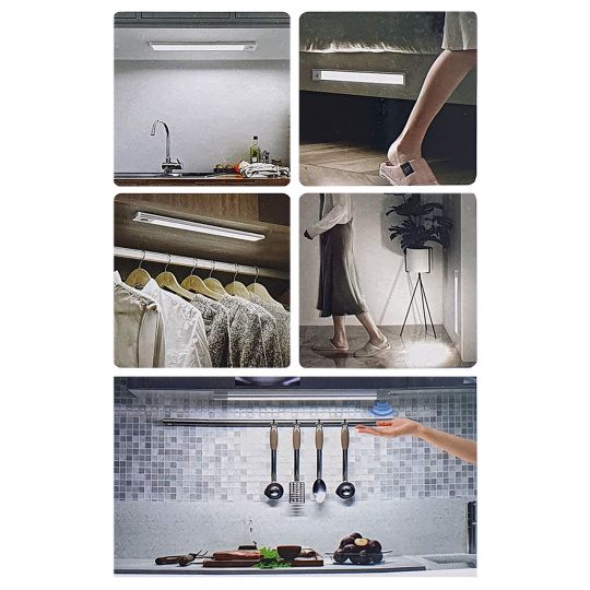 Automatické rozsvietenie svetla funguje iba v tme. Nezapne sa pod jasným svetlom a cez deň. Na zadnej strane sú 2 magnetické prúžky. Jeden opatrený obojstrannou lepiacou páskou a druhý upevnený vo svetle. Senzorové nočné svetlo sa dá ľahko prichytiť napr. do skrine, na police, rám postele, schodisko, pod kuchynskú linku apod. Napájané pomocou 4xAAA mikrotužkových alkalických batérií (nie sú súčasťou balenia).