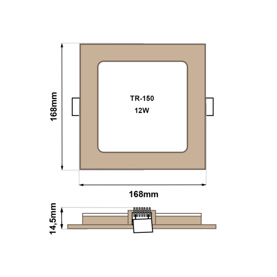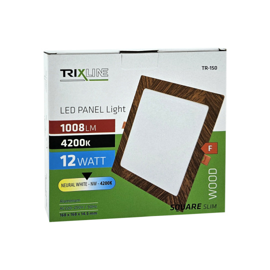 Štvorcový vstavaný LED panel Trixline TR-150 s výkonom 12W so svetelným tokom 1008lm a neutrálnou bielou farbou svetla 4200K.Pôsobivý design v dekore dreva. Panel je vyrobený z kvalitného hliníka.Vďaka použitej LED technológii ušetríte až 85% energie.Je určený do interiéru na zapustenie do sadrokartónu s montážnym otvorom 15,3x15,3cm.Vonkajší rozmer svetla je 16,8 x16, 8x1, 45cm.Rýchla a jednoduchá inštalácia.