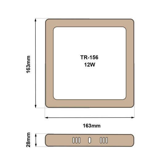 - Vonkajší rozmer svetla: 163x163x28mm