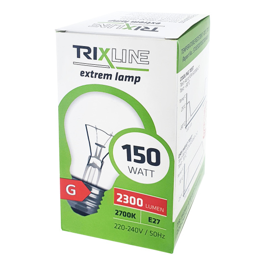 Teplotne odolná žiarovka Trixline 150W, A70, E27, 2700K
