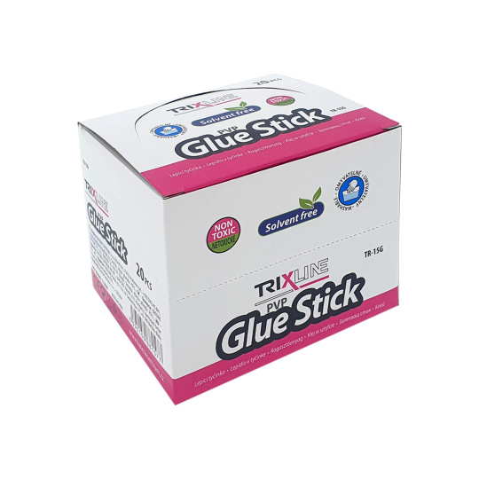 Tyčinkové tuhé lepidlo TR-15G Trixline pre domáce, školské aj kancelárske použitie. Vhodné na lepenie papiera, kartónu, lepenky, fotopapiera a podobne. Neobsahuje rozpúšťadlá.