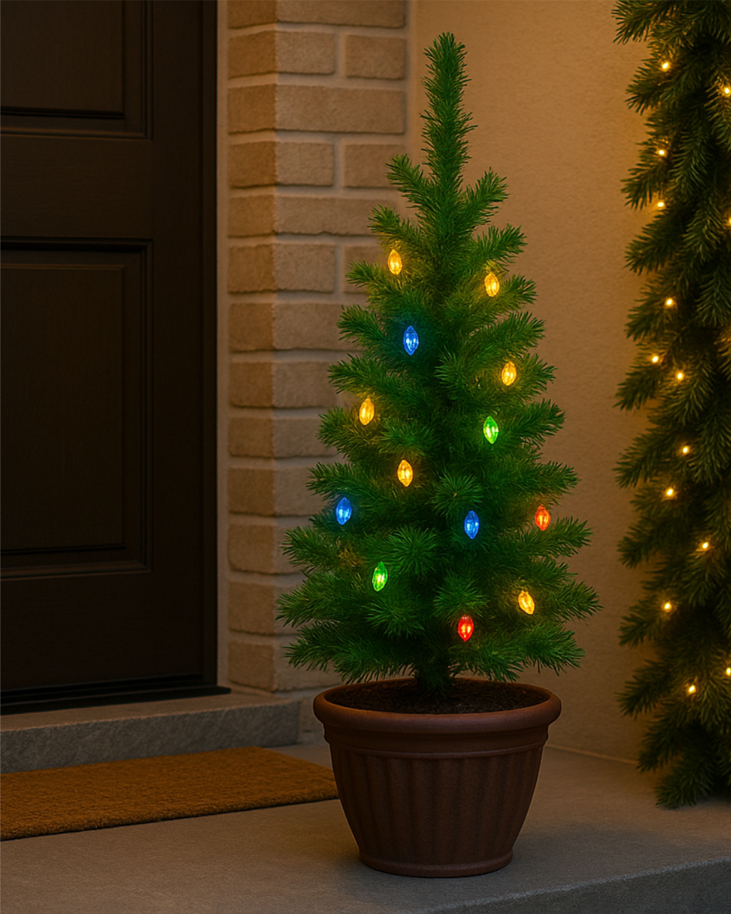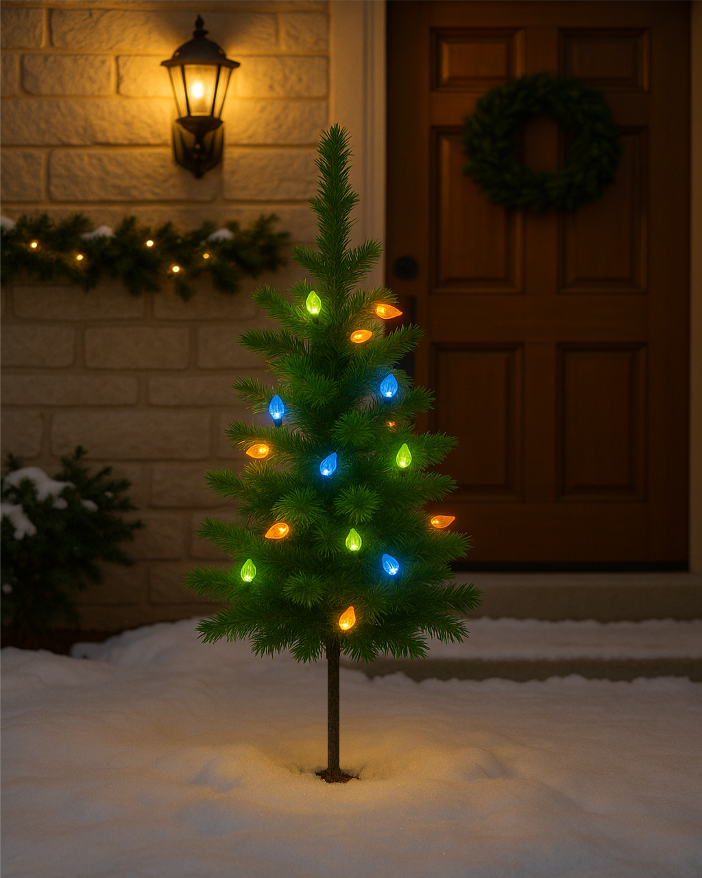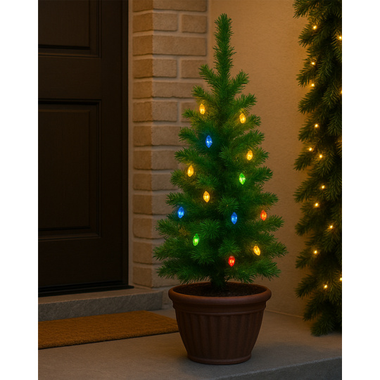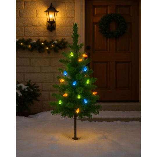 Stromček je vhodný pre vnútorné aj vonkajšie použitie – možno ho ľahko zapichnúť do zeme alebo upevniť do stojana.