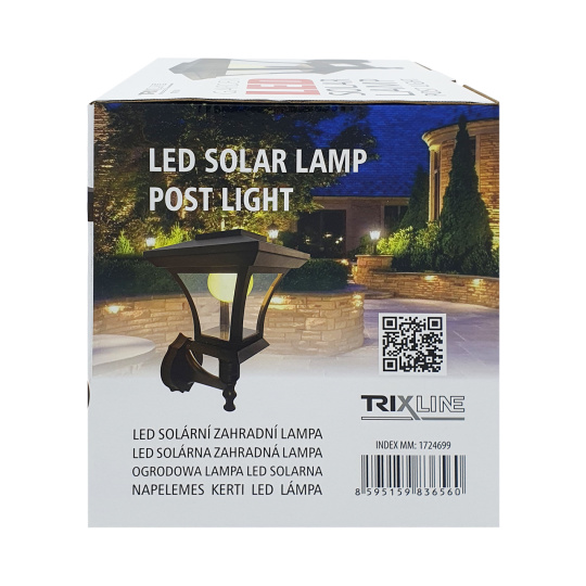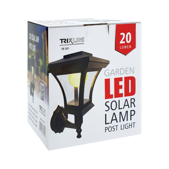 LED solárna záhradná lampa TR 501 Trixline Nástenné prevedenie lucerny na pripevnenie na stenu. Vhodná na osvetlenie záhrady, okolia rodinného domu, balkónov, terás a pod. Vďaka solárnemu panelu ušetríte energiu a nie ste obmedzení pripojením do elektrickej siete. Lampa je navrhnutá tak, aby svietila po zotmení. Plastový kryt v tvare žiarovky s 8 LED diódami vyžaruje príjemnú teple bielu farbu.